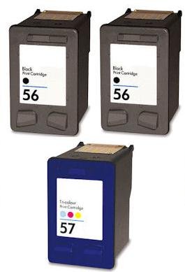 3pz x Cartuccia inchiostro nero e colore compatibile per 2 x HP56 + 1 x HP57 [HP6656A / HP6657A]
