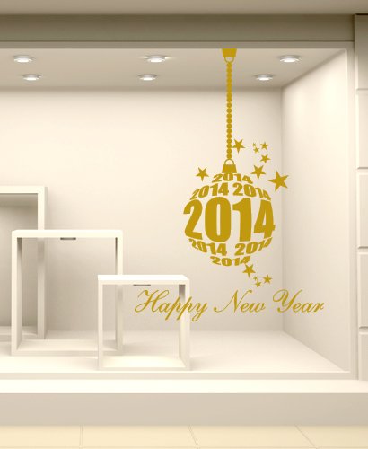 Adesivi Murali Vetrofania natalizia 'Pendente Happy New Year' - Misure 55x80 cm - Vetrine negozi per Natale