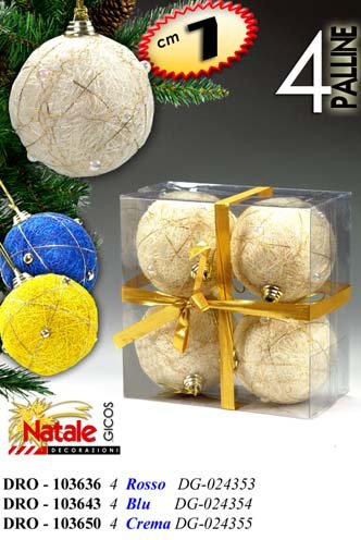 Description : set di 4 PALLE DECORATE con PERLINE e filo oro per ALBERO disponibili solo COLOR BLU. 7cm diametro