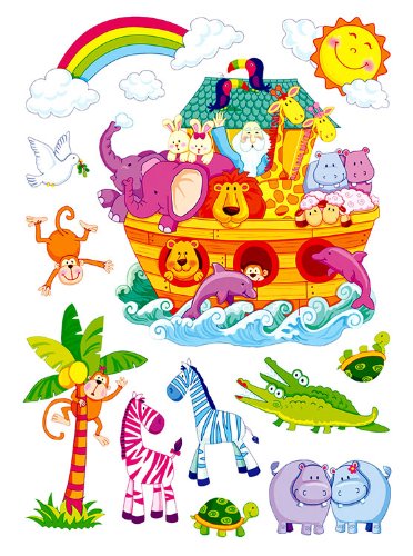 Description : Simpatici adesivi per rendere allegra la cameretta dei bambini, tanti soggetti (13 adesivi) dell'ARCA DI NOE' per sognare le avventure con tutti gli animali. Il foglio ha dimensioni cm 70 x 50. Possono essere posizionati sul muro, sui vetri, sulle porte, sui mobili.