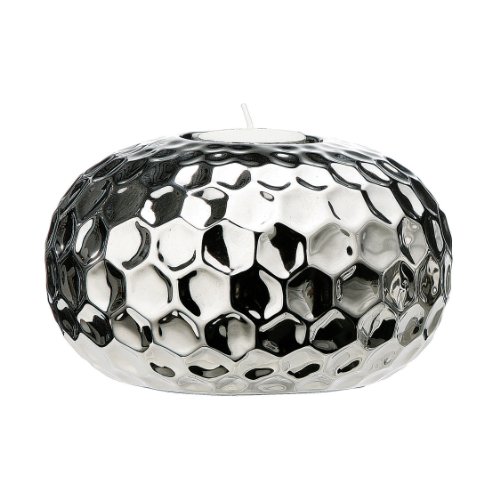 Premier Housewares Porta lumino grande in ceramica effetto battuto, colore: Argento