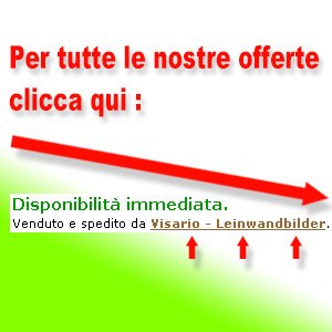Description : FINE ART Stampa su tela. Questo quadro è fissato su un telaio dello spessore di 2 cm. Potrete appenderlo immediatamente alla vostra parete. Nella parte posteriore la tela è fissata in maniera ideale per una perfetta tensione dell'immagine. I bordi laterali sono stampati in modo da ottenere un effetto particolarmente decorativo. Le grucce sono incluse.