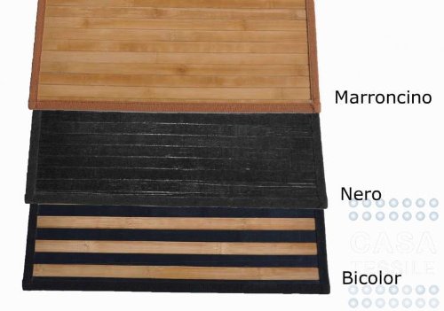 Description : Tappeto bamboo grande passatoia 60x180 cm. Ecco l'unico tappeto che potrete lavare col pavimento.Il tappeto è formato da listelli grandi di bamboo naturale, larghi circa 2,5 cm, con spessore di 5 mm ognuno, più importanti rispetto al classico bamboo. Il sottofondo è telato e antiscivolo e la bordatura di rifinitura è in cotone. Prodotto importato N.B. Eventuali imperfezioni non sono da considerarsi difetti ma una normale caratteristica di un prodotto realizzato con bamboo naturale.